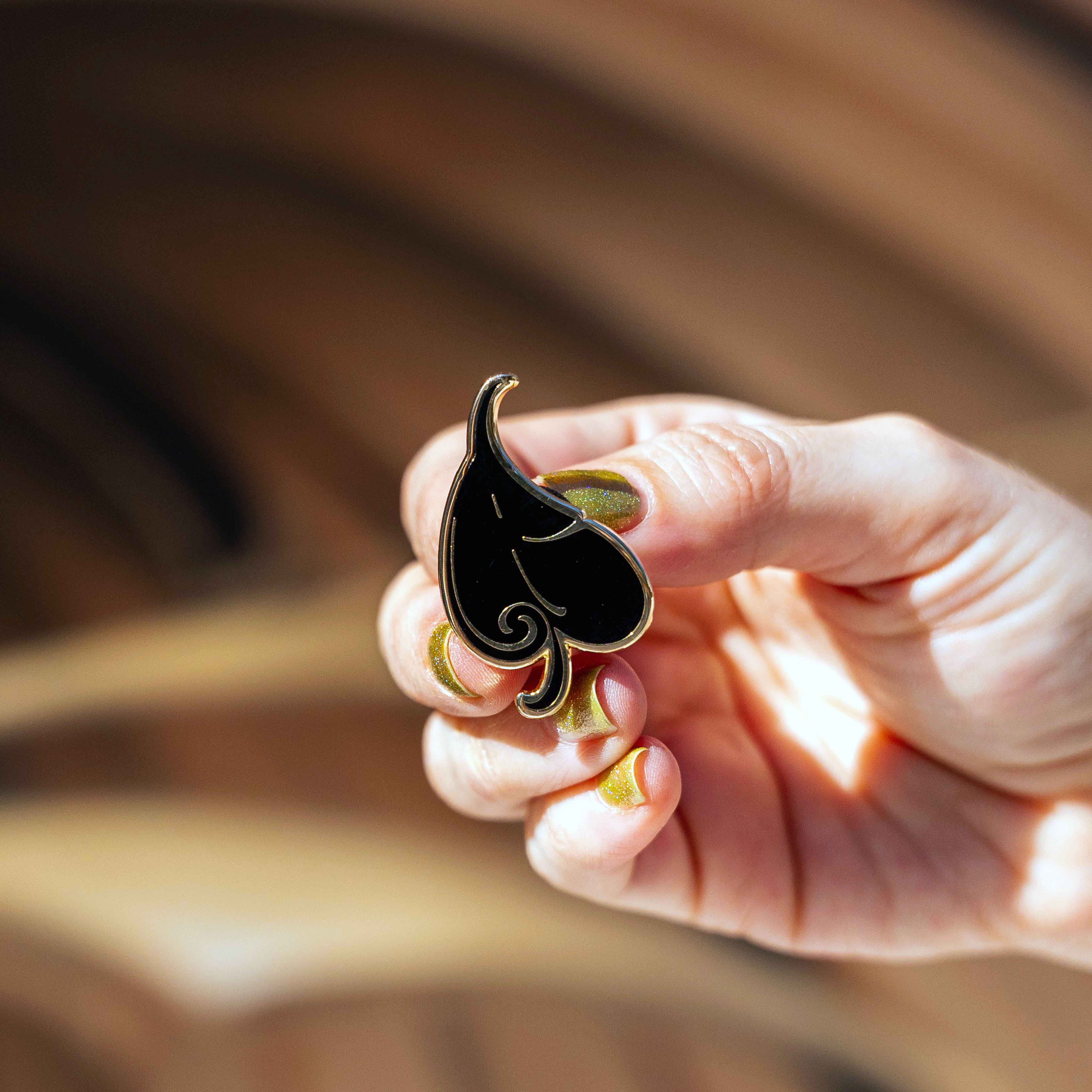 A: The pin is made of premium gold cloisonné with black enamel accents, ensuring durability and a luxurious finish.
