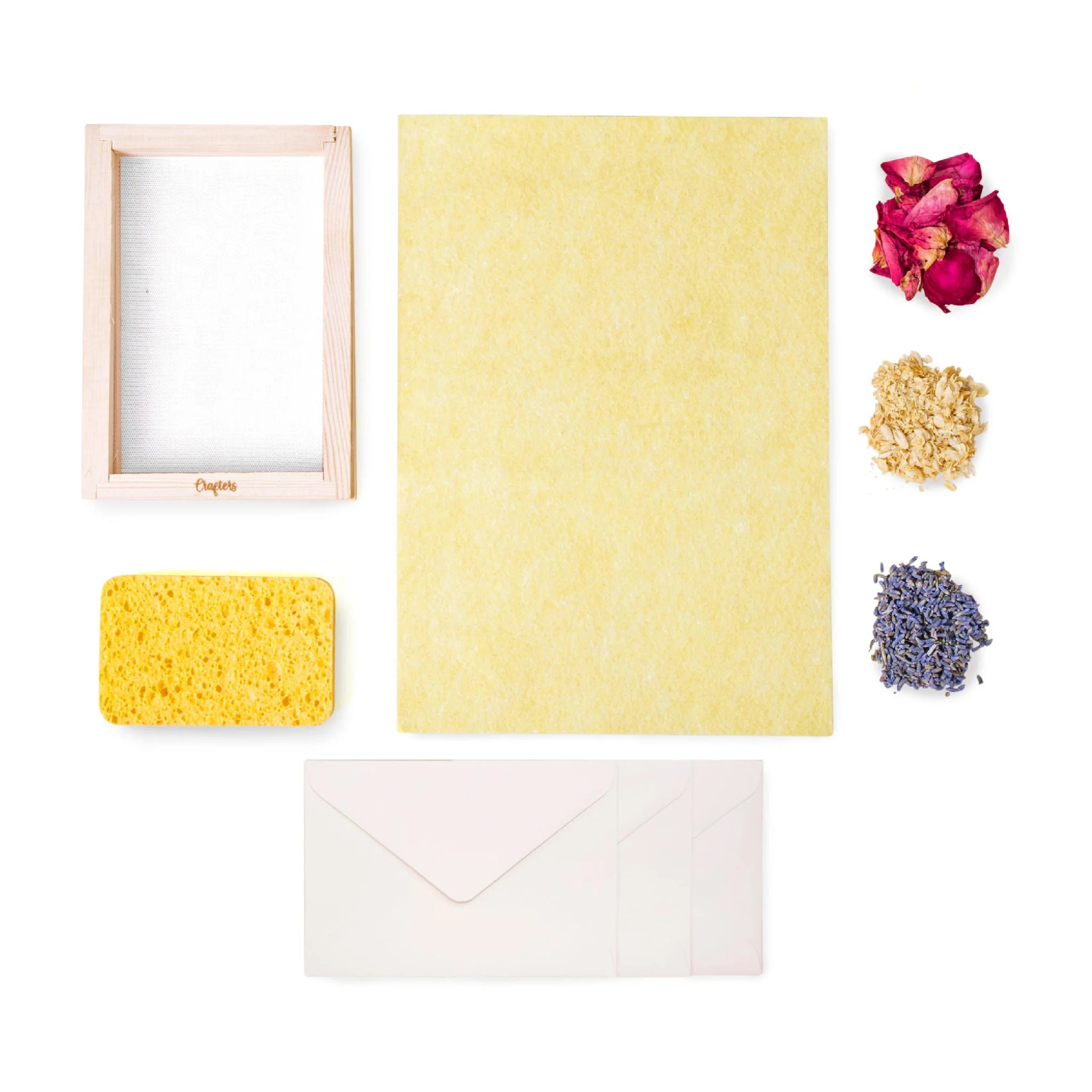 Experience the joy of crafting like never before with our Kikkerland Crafters Flower Paper Kit. This artisan creation kit comes loaded with a variety of vibrant flowers, a sturdy pinewood frame, a reusable cloth, a sponge, and three envelopes - all the essentials needed to make your own gorgeous flower paper creations. Specially curated by renowned designer Hector Serrano, the kit encourages creative exploration and the formation of unique, handmade pieces that tell your personal story.