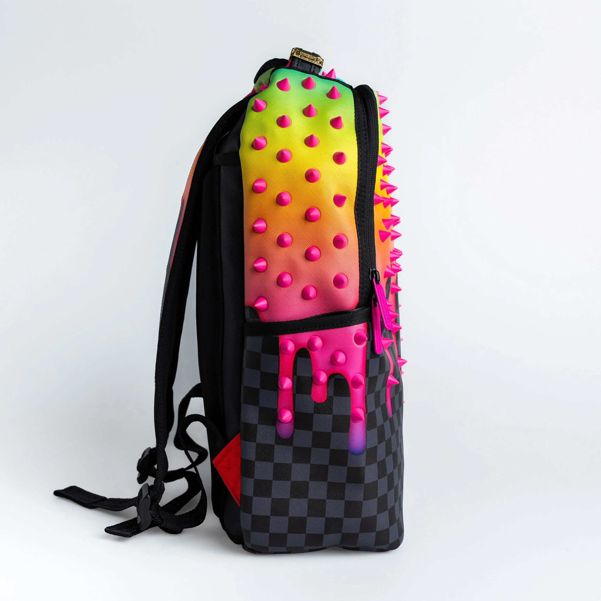 The DAN LAM DRIPS Backpack, a stunning collaboration between Sprayground, Dan Lam, and Wynwood Walls, is not just a backpack but a statement piece. Crafted with the finest 100% PVC, it boasts a unique texture of faux leather, enhanced by rubber spikes that add an edgy, artistic flair. This exclusive design marries practicality with the avant-garde style, perfect for those who dare to stand out.