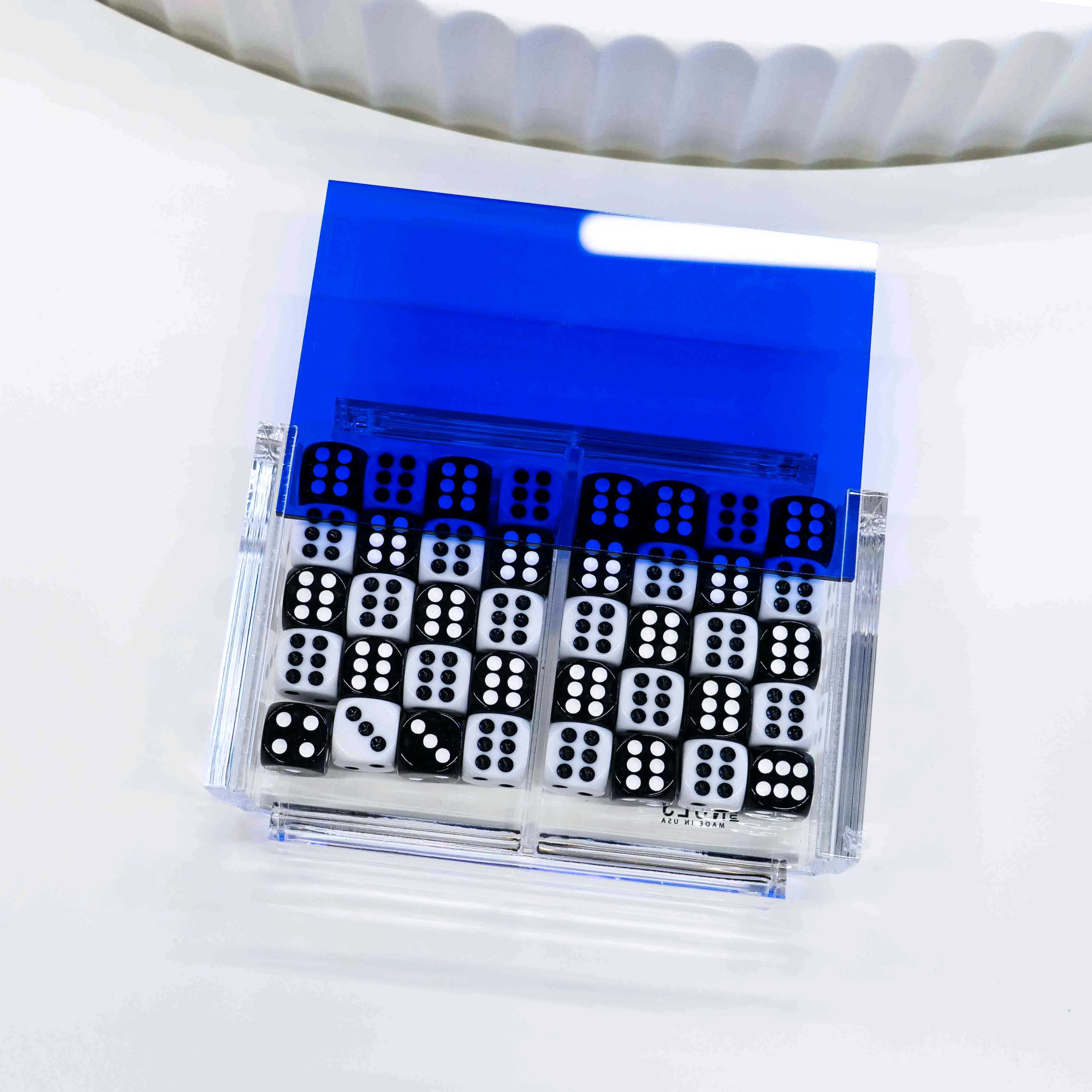 El Dado Luxe turns dice night into a design object: a clear acrylic storage + display case, formed from a single piece of acrylic that’s hand-heated, folded, and flame-polished. It holds up to 40 standard dice, keeping everything aligned, protected, and ready on the table, shelf, or bar cart.
