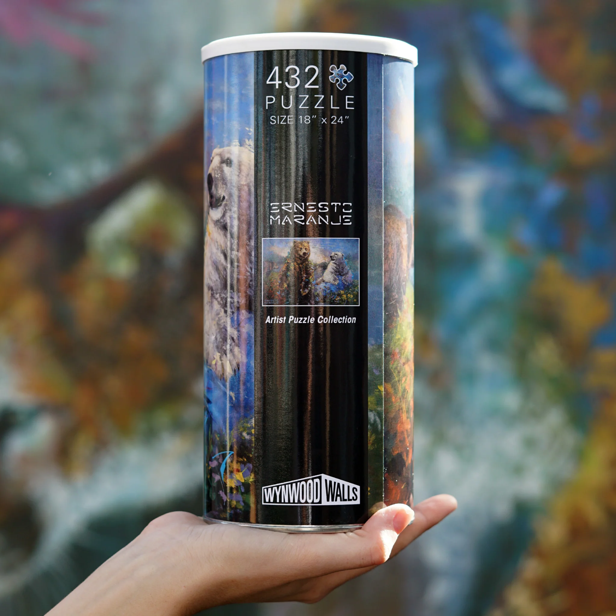 Impermanence turns Ernesto Maranje’s wildlife painting into a hands on build that rewards patience and close looking. The scene centers a brown bear and a polar bear in a painterly landscape, with saturated atmospheres, florals, and fine line accents that keep revealing new cues as sections lock in. At 432 pieces, it is detailed without becoming endless, and the finished 18 in x 24 in format reads like a compact poster scale artwork once complete.