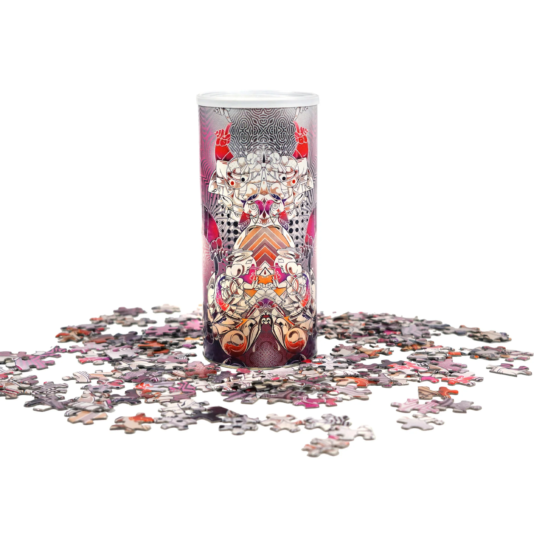 RORSCHACHTEST compresses HowNosm’s mirrored, maze dense artwork into a 432 piece build that rewards slow pattern reading. Expect intricate linework, repeating motifs, and red accents moving through grey and pink tonal shifts, so momentum comes from matching micro details more than big landmarks. Finished at 18 in x 24 in, it lands at a poster like scale that makes the symmetry feel intentional once complete.