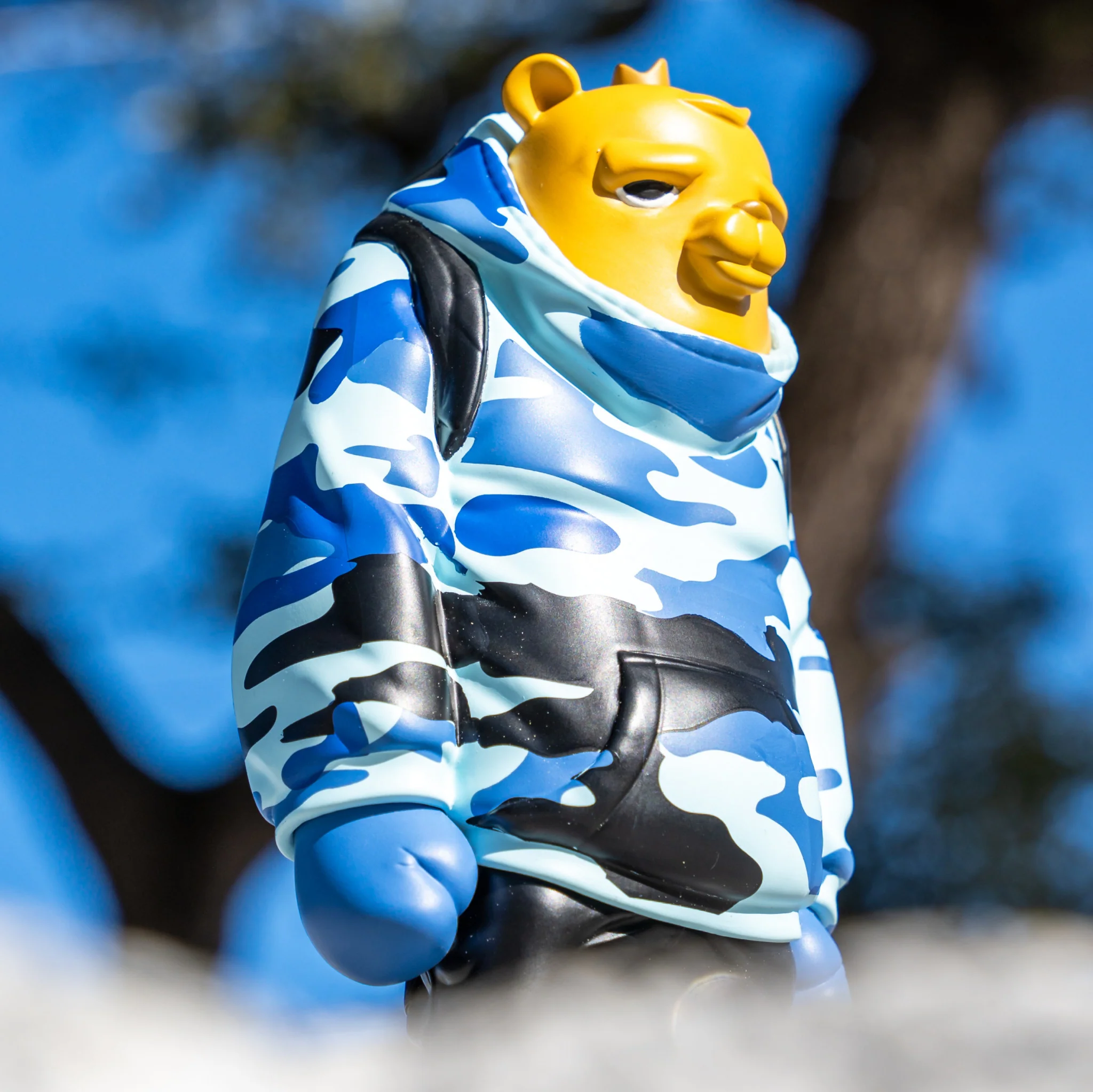 Blending Rivera's bright, street-art influenced style with Fudge's painstaking approach to character design, the Kub Champ Blue Camo Edition is a work of art. The enticing blue camouflage pattern and dynamic attitude convey a sense of strength and resolve, making this an outstanding piece of artwork. Expertly made from superior materials, this work strikes the ideal balance between power and grace, making it a must-have for every art collector.
