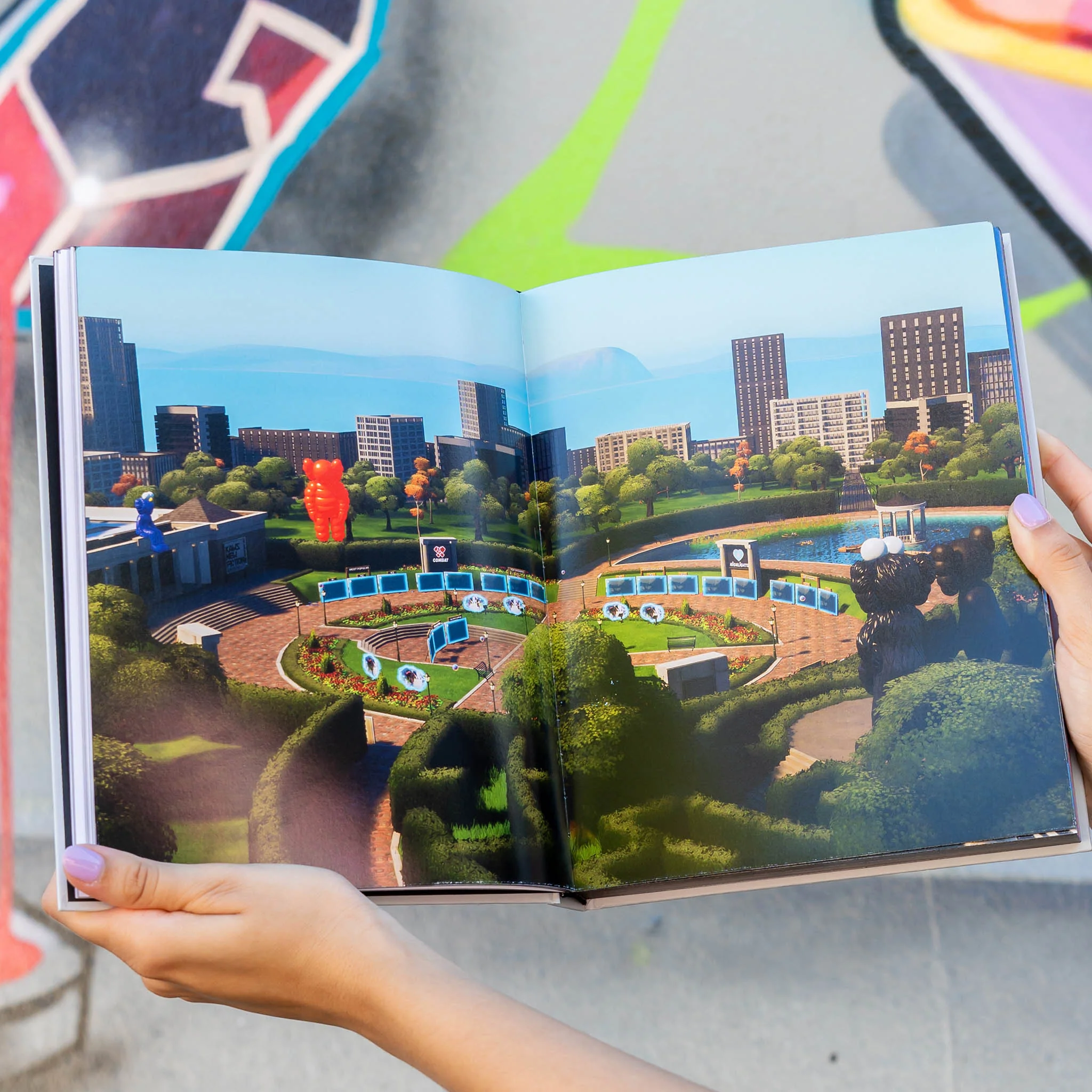 KAWS: New Fiction features a minimalist cover design with cut-out typography. The book showcases vibrant illustrations and 3D renderings, reflecting KAWS' unique artistic style. Inside, readers will find insights into KAWS' creative process and the themes that drive his work, perfect for street art enthusiasts.