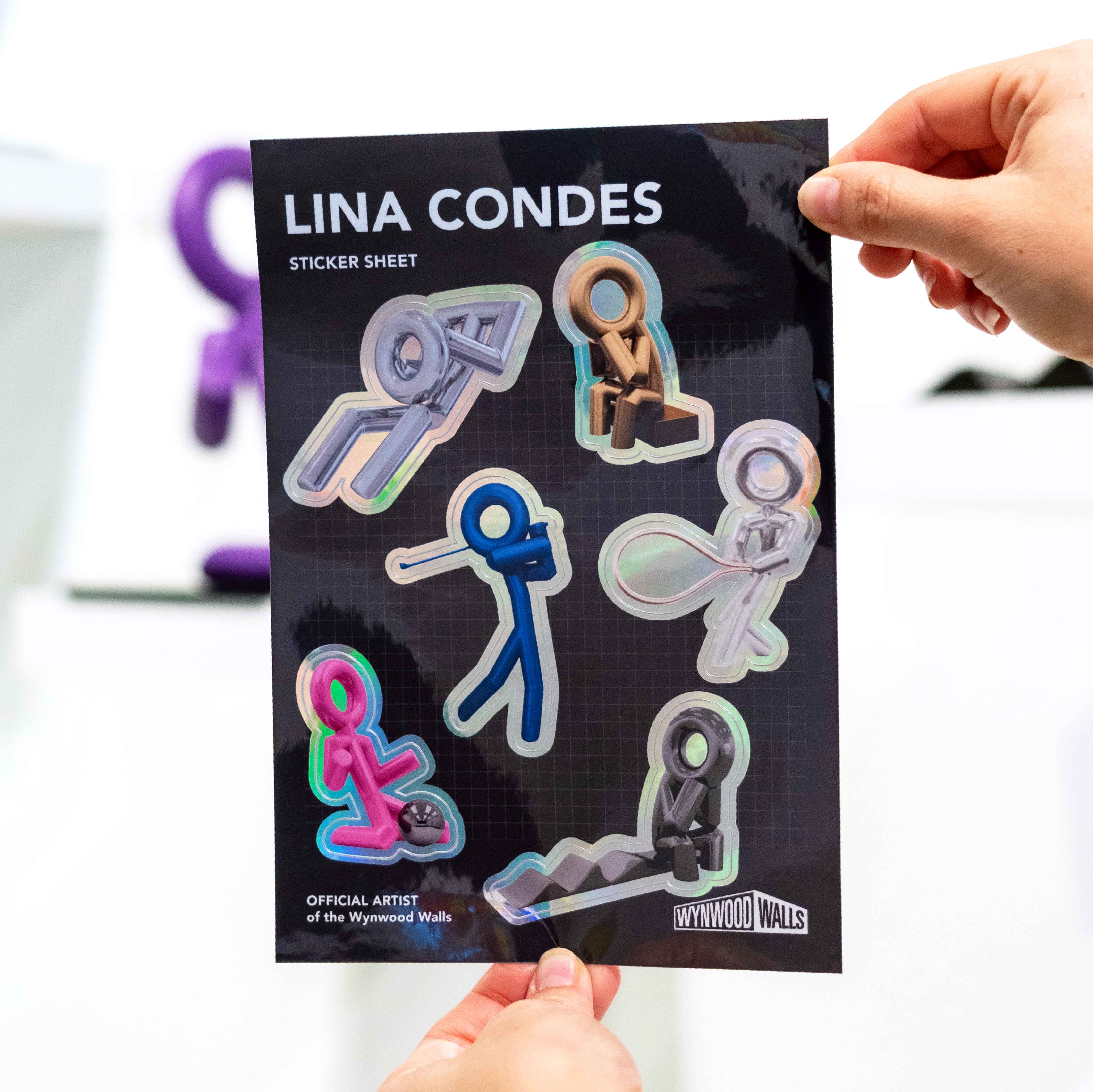 Unleash bold, contemporary energy with the Lina Condes Sticker Sheet, an exclusive collectible from Wynwood Walls Shop. This vibrant A5-sized sheet (5.8” x 8.3”) features six die-cut holographic stickers crafted on premium glossy material, showcasing Condes’ dynamic and modern artistic vision.