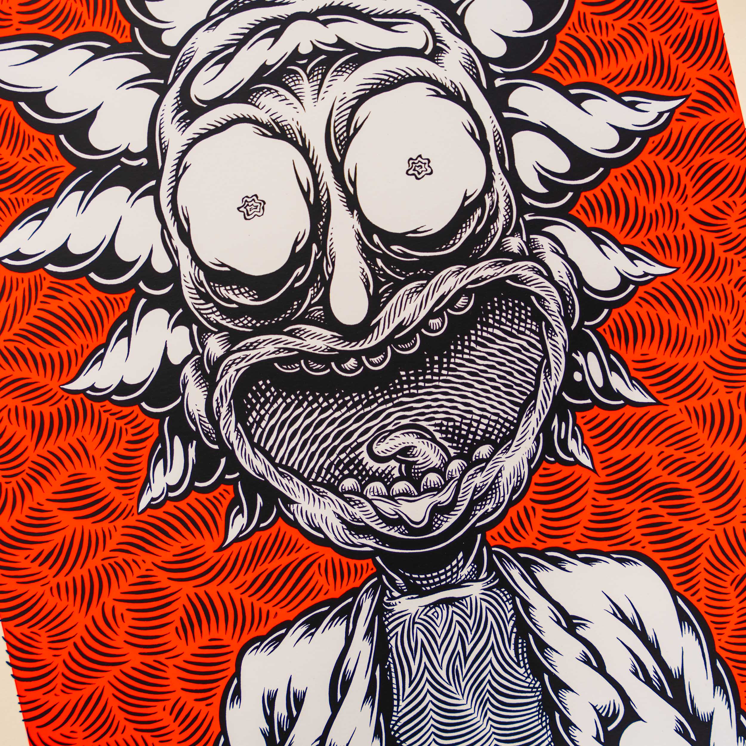 Crafted using three-color screen printing on 100 lb. Classic Cream Cover stock, this artwork bursts with intricate linework and vibrant intensity. Limited to just 100 prints plus 10 Artist’s Proofs, each piece is hand-signed and numbered by the artist, ensuring its value and authenticity for collectors.