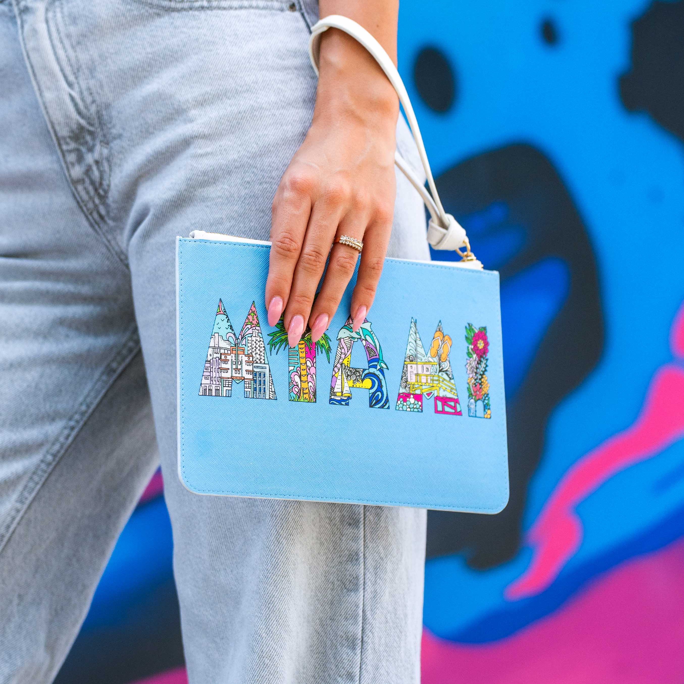 Discover the unique blend of functionality and style with the Miami Clutch Bag x Kelsey Montague. Designed for the art lover on the go, this clutch features a vivid print from renowned street artist Kelsey Montague, whose work is celebrated in the realms of street art and contemporary graffiti art. Its compact size (9.5in x 6.6in) makes it a perfect companion for evening outings or casual meetups, offering a chic touch to any ensemble.