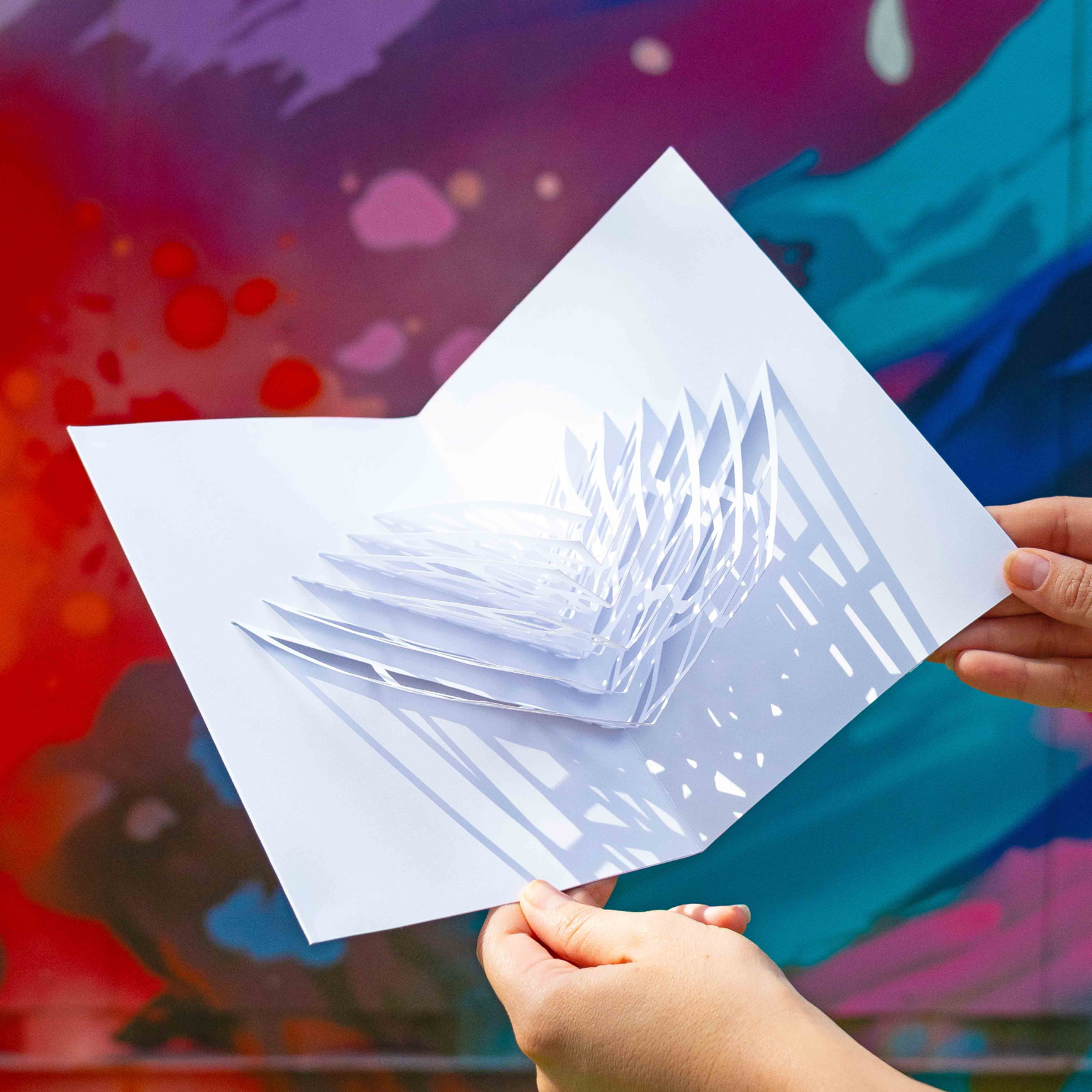 Bring the beauty of sculptural paper art to your message with the Spines Pop-Up Greeting Card by renowned paper engineer Peter Dahmen. Adapted from his acclaimed Pop Up Sculptures book, this scaled-down version captures the mesmerizing dimensional elegance of Dahmen’s original design in a compact, frame-worthy format.