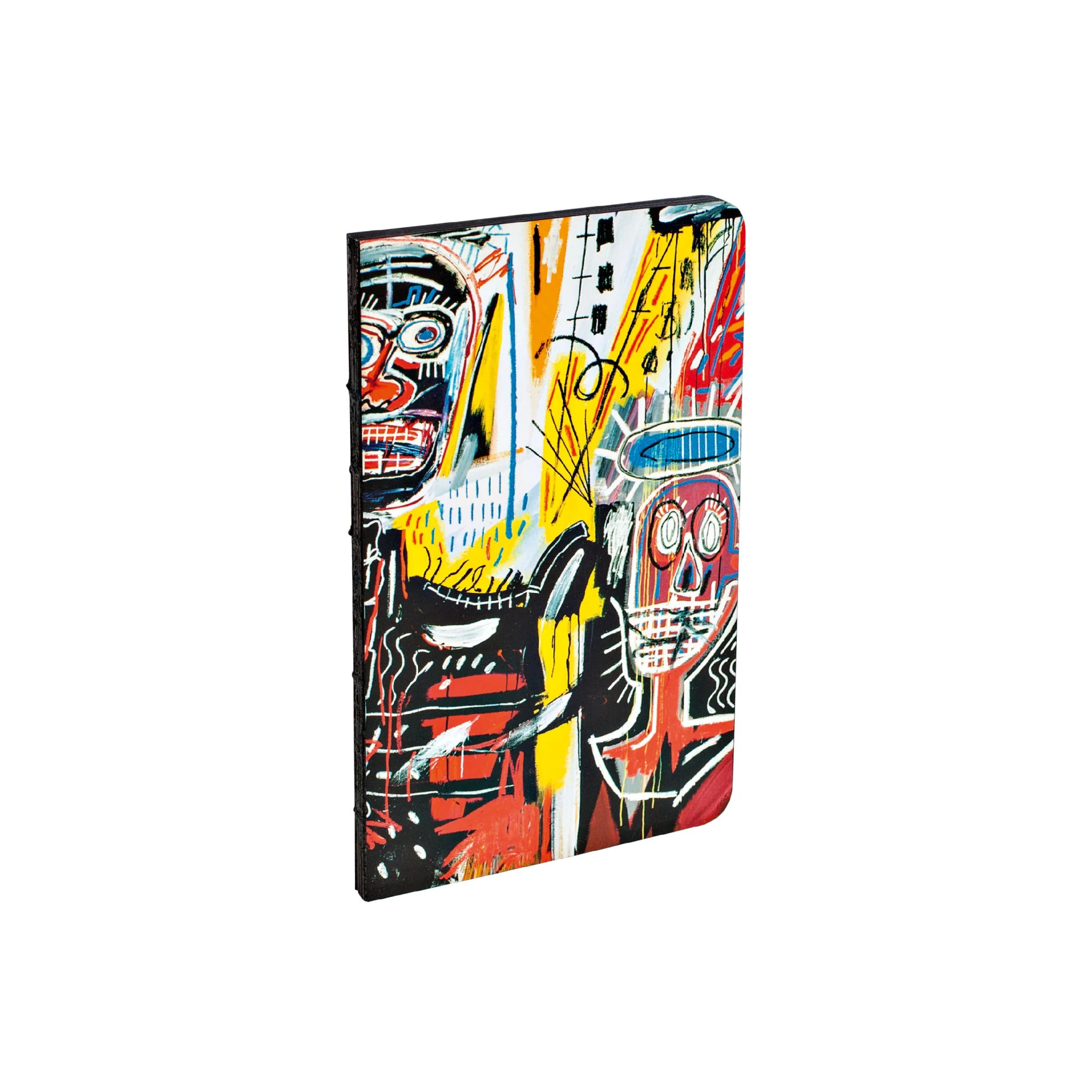 Jean-Michel Basquiat's bold painting titled: Philistines, 1982 is reproduced in our luxurious Small Bullet Journal with black edge pages. 120 pages, dot-grid paper, black edging, lay-flat binding. Very portable and eye-catching in lots of designs. We love Jean-Michel Basquiat's Philistines.