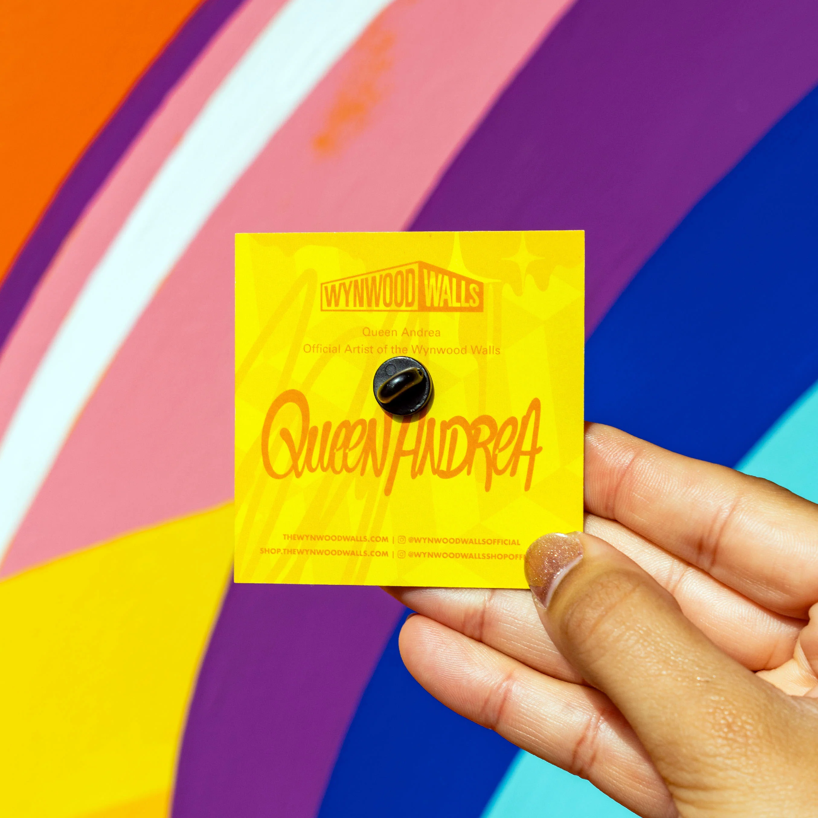 Each Queen Andrea LOVE Pin is crafted with meticulous attention to detail, reflecting the artist's iconic use of electric colors and bold typography. The high-quality materials ensure durability, allowing the pin to remain a vibrant splash of color through daily wear and tear. This is not just a pin; it's a wearable piece of art that speaks to those who dare to wear their heart on their sleeve—or lapel.
