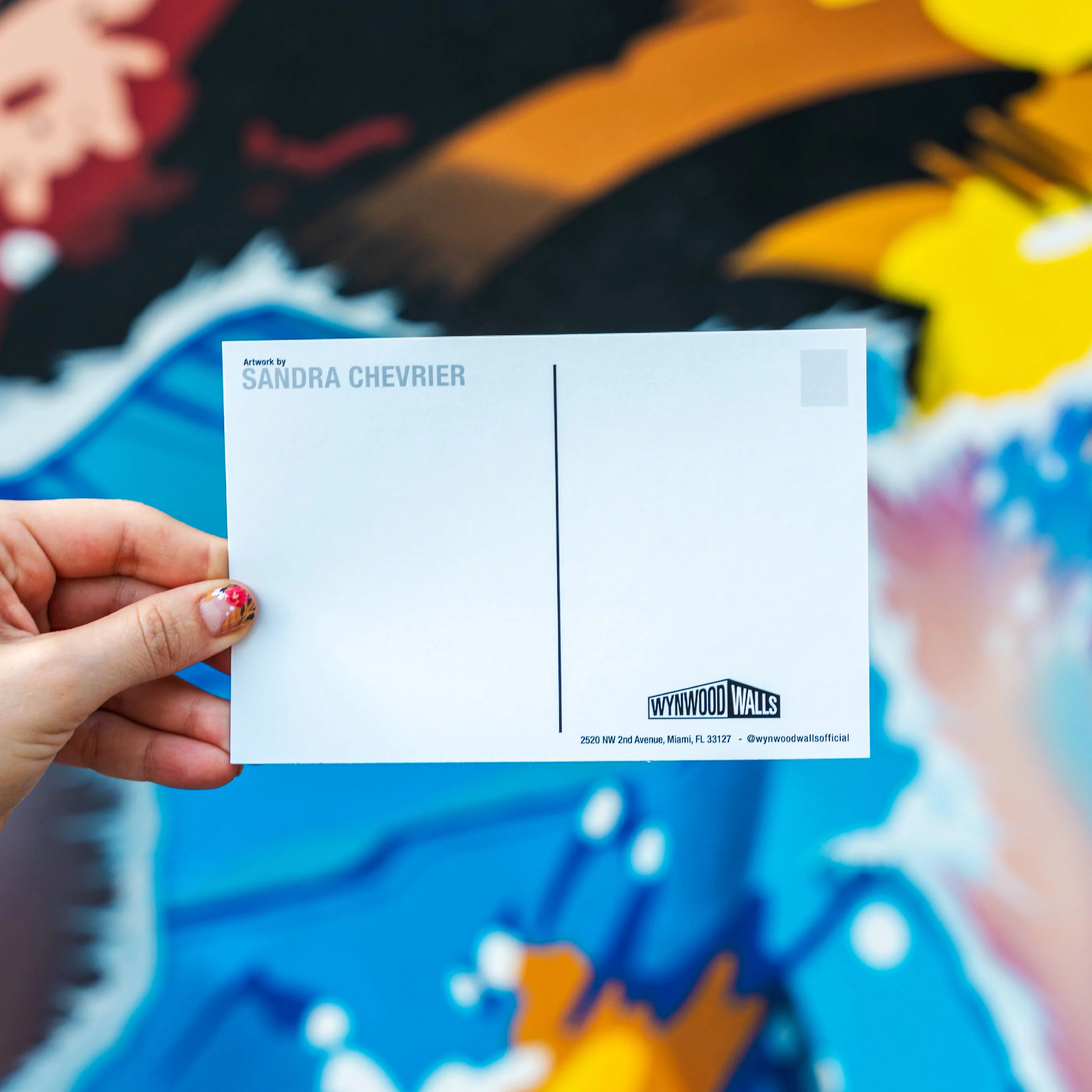 - What makes this postcard a collector’s item? This postcard is part of a limited edition series exclusively featuring artwork by Sandra Chevrier, showcased at the iconic Wynwood Walls.