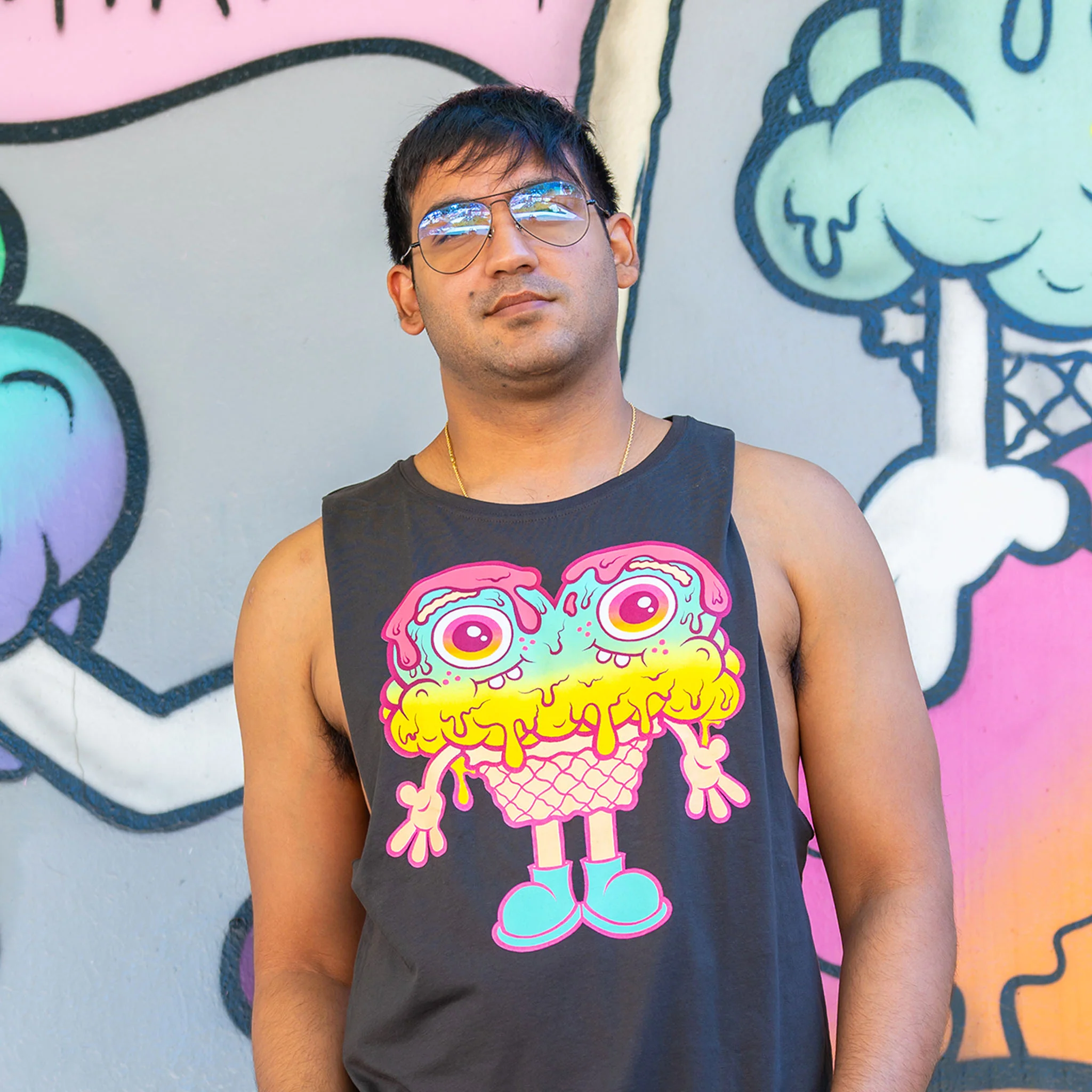 Buff Monster, renowned for his signature, vibrant style, blends seamlessly with the gritty, avant-garde essence of The Wynwood Walls. Each Siamese Sam Gray Tank is a masterpiece, showcasing a unique blend of colors, textures, and shapes that challenge traditional art norms. This collaboration is not just a collectible; it's a statement piece that celebrates diversity, creativity, and boldness in art.