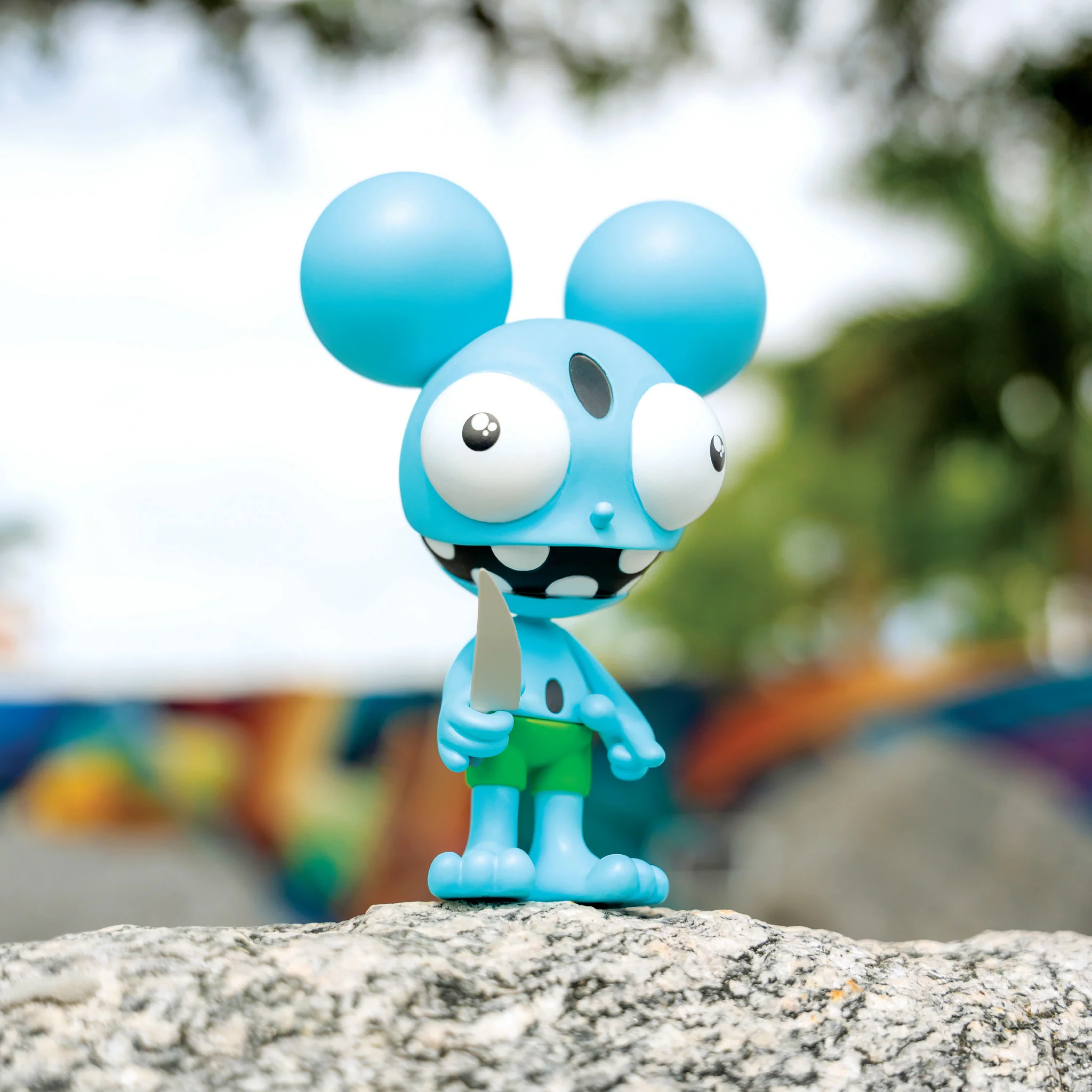 James 'Dalek' Marshall's new Space Monkey vinyl art toy from 3DRetro debuts in a light blue edition. The figure features Dalek’s signature character with green shorts, killer knife, and a massive mallet. The new figure features a compact profile with short arms, legs and barefeet.